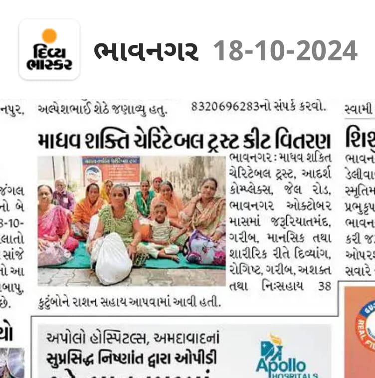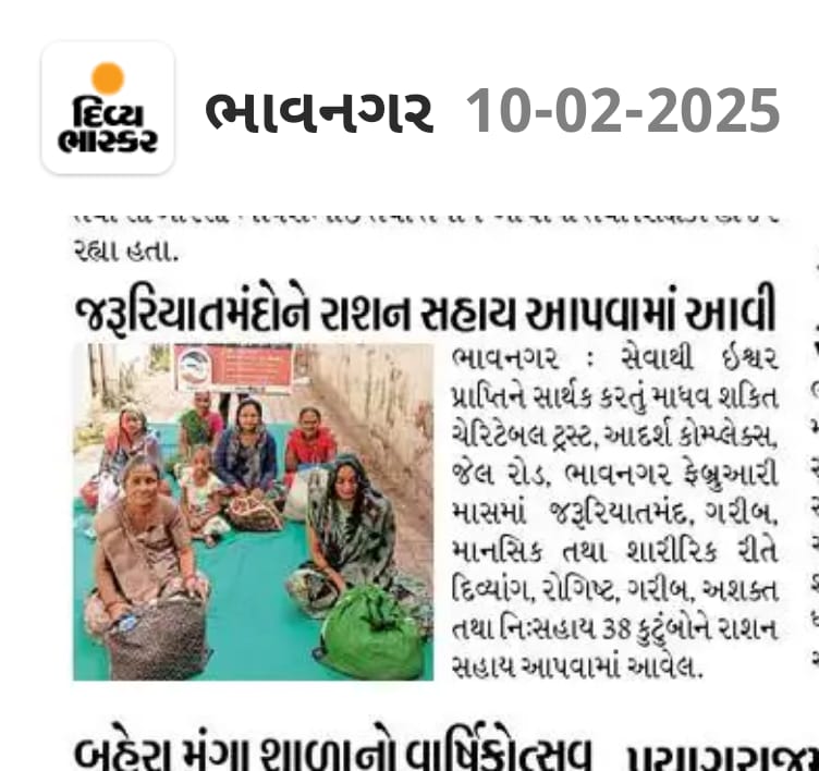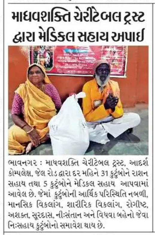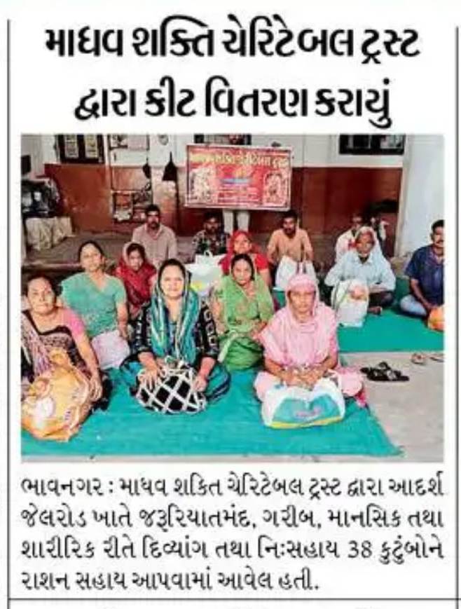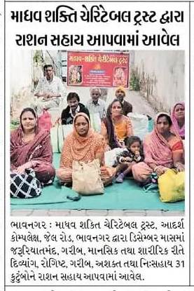 માધવ શક્તિ ચેરિટેબલ ટ્રસ્ટ દ્વારા રાશન સહાય આપવામાં આવેલ