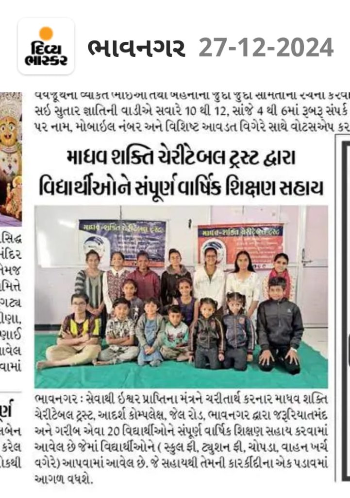 માધવ શક્તિ ચેરીટેબલ ટ્રસ્ટ દ્વારા વિદ્યાર્થીઓને સંપૂર્ણ વાર્ષિક શિક્ષણ સહાય